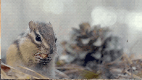 除了生动的叙事,全片的科普意义也不曾缺席。聚光灯下,一颗松果登场,此时的《万物滋养》更像一部百科全书,这颗松果的习性、生长环境等都被逐一展现。随着音乐的陡转,一部动物大片又突然登场。